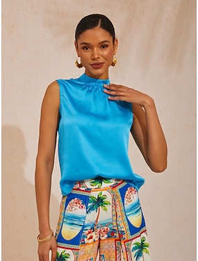 top in raso setoso con maniche a pipistrello, ideale per una notte d'estate con palme.