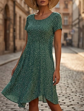 Per donna Mini Abito Abito Floreale Abito Boho Abito Stampato Classico Moderno Quotidiano All'aperto Vacanza Vestibilità regolare Fiore Manica Corta Girocollo Blu Vino Verde Estate