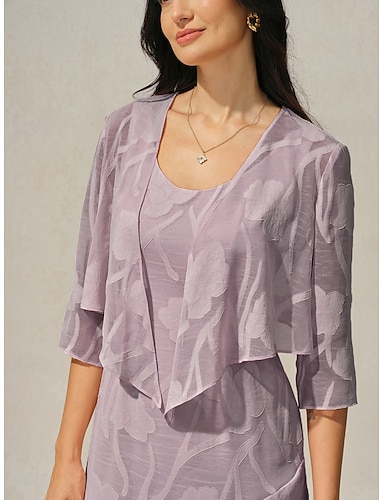 Per donna Bolero Pizzo Illusione Floreale Elegante Essenziale Manica 3/4 Girocollo Top Regolari Quotidiano Ospite di nozze Abbigliamento da vacanza Lilla Estate Primavera Autunno