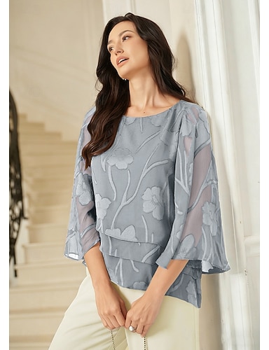 Per donna Camicia di Pizzo Blusa Top Eleganti Top in chiffon Orlo asimmetrico Tinta unica Floreale Elegante Manica 3/4 Manica a Campana Scollo a Barca Top Regolari Quotidiano Lavoro Ospite di nozze