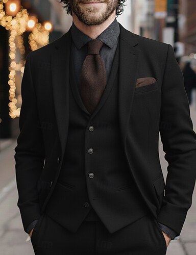 Uomo Abiti da lavoro Casuale Matrimonio Nero Grigio chiaro Primavera, Autunno, Inverno, Estate Tuta Bavero classico Quotidiano Formale Tinta unita Vestibilità aderente 3 pezzi Monopetto a un bottone