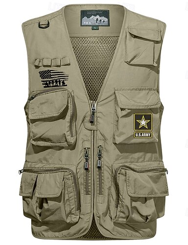 Per uomo Gilet Gilet da pesca All'aperto Quotidiano Moda Casual Primavera Autunno Cerniera Tasca Stampato Poliestere Confortevole Stella Numero Monopetto Un Bottone Collo alla coreana Vestibilit