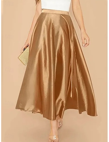 Per donna Gonne in raso Elegante Moda Midi Vita Alta Gonne Semplice Micro-elastico Feste Streetwear Nero Vino Cachi Grigio scuro Primavera Raso Poliestere