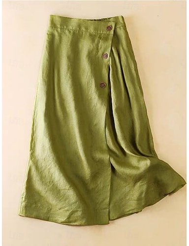 Gonne in lino da donna al 70%, gonne in lino di cotone, gonne lunghe casual a vita media, semplici, con tasche, anelastiche, per tutti i giorni, per le vacanze, nere, verdi, autunnali