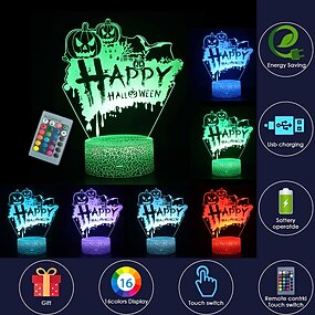 halloween 3d night light lamp anime 16 cambia colore regali di compleanno di halloween decorazioni di halloween per la camera da letto dei bambini (incubo prima di natale)