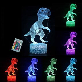 luce notturna dinosauro per bambini lampada da notte illusione 3d 16 colori che cambiano con regali di decorazione della stanza del telecomando per bambini ragazzi ragazze