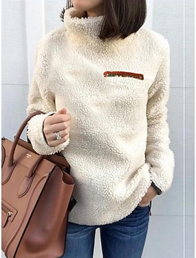 Per donna Blusa Cerniera Tinta unica Elegante Casual Manica Lunga Collo Alto Top Regolari Quotidiano Rosa Vino Verde militare Albicocca Grigio Primavera Autunno Inverno