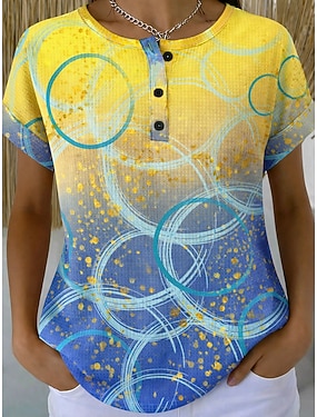 Per donna Top a maglia con texture Maglietta Blocco di colore Ombre Grafico Geometria Elegante Classico Manica Corta Girocollo Henley Top Regolari Quotidiano Sportivo Blu Giallo Verde Estate Primavera