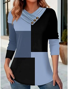 Per donna Maglietta Bottoni Stampato Grafico Geometrico Blocco di colori Vintage Elegante Casual Manica Lunga Scollo a V Top Regolari Quotidiano Weekend Blu Viola Verde Cachi Autunno Inverno
