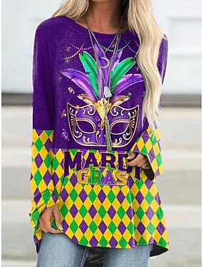 T-shirt da Donna Carnival Grafica Geometrica Vintage Elegante Classica Maniche Lunghe Collo Giro Regular Tops Stampa Quotidiana Viola Primavera Autunno