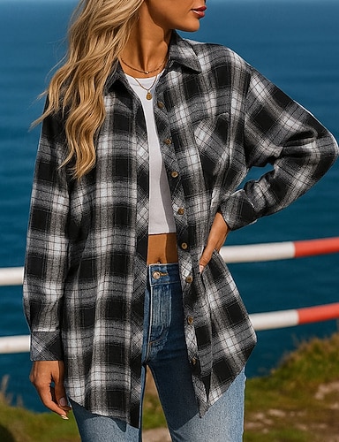 Per donna A quadri Giacca da camicia Lounge Top Autunno Manica Lunga Athleisure Leggero All'aperto Viaggio Sportivo Nero Giallo Rosso abbigliamento sportivo Abbigliamento sportivo