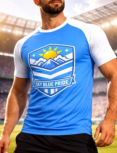 Per uomo Geometrico Argentina Calcio estivo Partita globale Maglioni Maglia da corsa Estate Blocco di colore Manica Corta UPF 50 Asciugatura Rapida Traspirante Casuale Corsa Jogging Fitness Blu