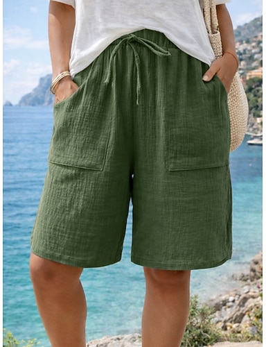 Per donna Finto cotone e lino Chinos Shorts Pantaloncini Estivi Vacanza Moda Streetwear Corto Vita Alta Semplice Coulisse Tasca Elastico in vita Traspirabilità Confortevole Traspirante Inelastico