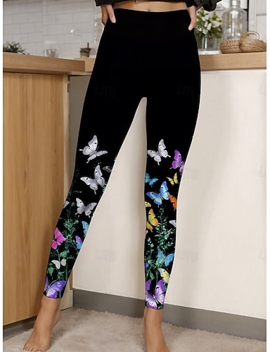 Per donna Pantaloni Leggings Streetwear Casual Lunghezza intera Vita Alta Farfalla Elastico in vita Stampato Traspirabilità Confortevole Elasticizzato Vacanza Streetwear Abbigliamento quotidiano Nero