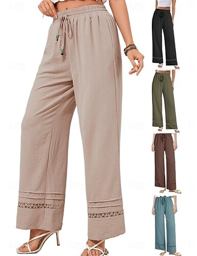 Per donna Finto cotone e lino Gamba larga Chinos Pantaloni Estivi Vacanza Essenziale Casual Lunghezza intera Vita Alta Semplice Tasca Fascia Elastica Comodo Morbido Confortevole Elasticizzato