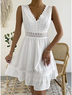 Per donna Mini Abito Finto cotone e lino Abito a trapezio Abito Estivo Casual Quotidiano Vestibilità comoda Semplice Senza Maniche Scollo a V Nero Bianco Estate
