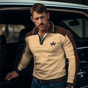 Per uomo Polo con zip Maglia da golf Manica Lunga Magliette polo Camicie con Colletto Business Casual Abbigliamento da lavoro Abbigliamento Formale Abbigliamento da festa Stampa 3D Polo con cerniera