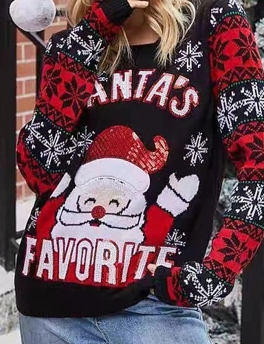 Per donna Maglione natalizio Fair Isle Felpa Maglione Elegante Moda Carino Tinta unica Grafico Babbo Natale Girocollo Lavorato a maglia Stampato Manica Lunga Top Regolari Maglia Natale All'aperto