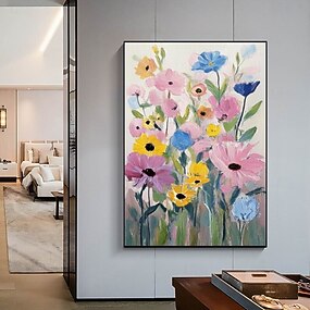 dipinto a olio fatto a mano su tela, decorazione da parete, fiori astratti per la casa, dipinto appeso su telaio teso/dipinto arrotolato senza cornice