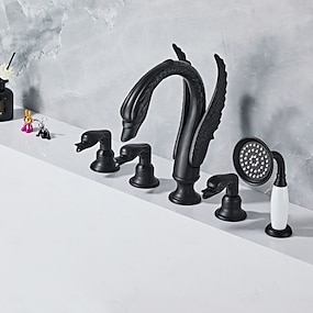 Rubinetto per vasca di lusso a 5 fori e 3 maniglie, rubinetto per lavabo da bagno, miscelatore per lavabo, rubinetto a doccetta stile cigno, rubinetto per vasca, rubinetto per lavabo, rubinetto dell'acqua, nero
