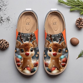 scarpe da viaggio in tela con punta larga da donna e motivo renna: graziose scarpe da passeggio natalizie, perfette per i viaggi delle vacanze e per lo streetwear invernale