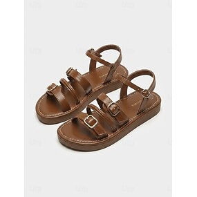 Sandali gladiatore da donna marroni - comodi sandali bassi boho con cinturini multipli e fibbie regolabili, ideali per vacanze al resort e fughe tropicali. &passeggiate estive