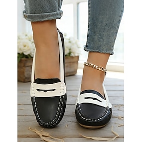 Mocassini bicolore khaki per donna - Scarponi slip-on in ecopelle morbida scarpe casual classiche per donne lavoro ufficio guida viaggi shopping uso quotidiano e uscite nel fine settimana