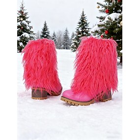 stivali da donna rosa con tacco alto e pelliccia, a metà polpaccio - stivali alla moda con tacco spesso per la moda invernale, eventi festivi e feste di Natale