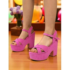 Sandali con plateau in pelle scamosciata rosa shocking da donna con cinturino alla caviglia - scarpe con tacco grosso e audaci per feste notturne e club