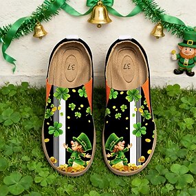 scarpe slip-on da donna per il giorno di San Patrizio: ballerine casual con stampa di trifoglio verde e suola comoda, scarpe eleganti e divertenti per feste, festival e uso quotidiano