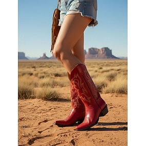 stivali da cowboy da donna in pelle rossa con motivo western ricamato - calzature urbane alla moda per outfit alla moda