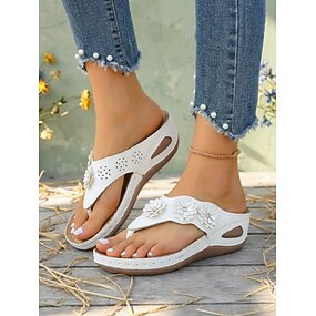 sandali infradito da donna decorati con fiori: comodi sandali infradito bianchi con dettagli floreali per uscite informali, giornate in spiaggia e vacanze estive