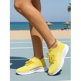 Scarpe da corsa da donna in maglia gialla: sneakers sportive leggere e traspiranti, facili da indossare, con suola antiscivolo ammortizzata, scarpe sportive casual per camminare, palestra, viaggi e