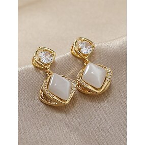eleganti orecchini pendenti placcati in oro da donna con occhio di gatto e zircone, disponibili in stile a perno forato e a clip per matrimoni, feste e occasioni formali