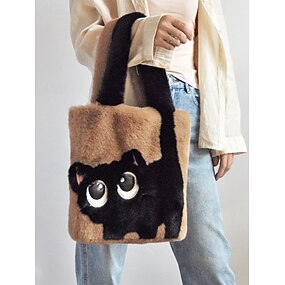 Borsa tote da donna in peluche con faccia di gatto, disponibile in più colori, materiale in morbida pelliccia, design carino e giocoso per uscite informali e regali