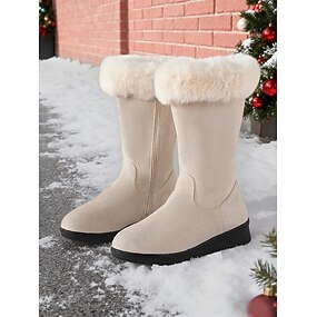 stivali invernali neri con cerniera da donna – caldi stivali da neve a metà polpaccio foderati in pelliccia sintetica per passeggiate all'aperto e moda per il freddo