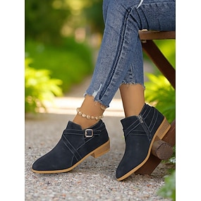 stivaletti da donna marroni con tacco basso, cerniera laterale e cinturino con fibbia: stivali casual eleganti per l'autunno e l'uso quotidiano