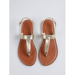 Sandali piatti da donna con cinturino a T color oro metallizzato - eleganti sandali infradito in similpelle con cinturino regolabile alla caviglia per resort di lusso all'aperto &vacanze al mare