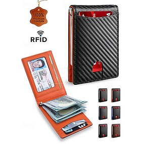 portafoglio da uomo con blocco RFID – pelle bovina di alta qualità con design sottile, più slot per carte e scomparto per contanti per viaggi e uso quotidiano colore nero arancione