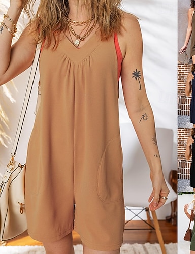 Per donna Normale Tuta Casual Tinta unica Senza Maniche Scollo a V Tasca Uscire Weekend Vestibilità regolare Nero Verde chiaro Verde militare Estate