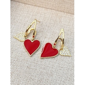 orecchini pendenti a forma di cuore rosso e oro con dettagli in strass: gioielli romantici per le donne, perfetti per San Valentino o per le serate romantiche