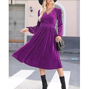 Per donna Abito Midi Abito di Natale Abito in Velluto Abito da Cocktail Moda Classico Moderno All'aperto Festa serale Ferie Vestibilità regolare Semplice Manica Lunga Colletto a Camicia Viola Marrone