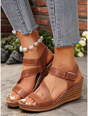 sandali con zeppa marroni da donna con cinturini regolabili – scarpe comode ed eleganti per l'estate e le uscite casual