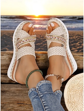 sandali con zeppa intrecciati da donna – sandali con plateau slip-on in stile boho con dettagli di perline per l'estate, la spiaggia e gli outfit casual