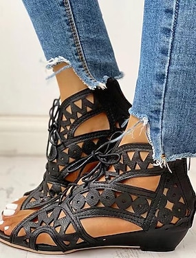 sandali con zeppa da donna con lacci e cut-out color sabbia – comode calzature estive per uscite casual