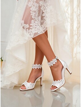 scarpe da sposa con tacco a spillo in pizzo bianco e cinturino alla caviglia – eleganti scarpe da sposa per le spose, sandali romantici ed eleganti per le occasioni formali