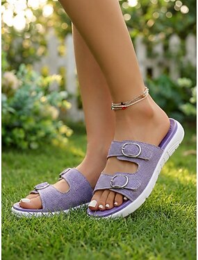 sandali da donna con doppia fibbia viola – scarpe estive casual leggere e comode per camminare, fare giardinaggio, andare in spiaggia e per l'uso quotidiano