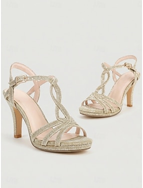 Sandali da donna con tacco alto e cinturini dorati glitterati, eleganti scarpe da cerimonia a punta aperta per invitati a matrimoni, matrimoni in giardino &eventi formali