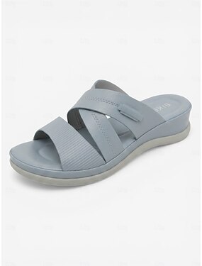 Sandali da donna blu minimalisti con supporto plantare, comodi e leggeri con suola morbida e cinturino incrociato, sandali comodi per camminare in estate e in viaggio. &uso occasionale