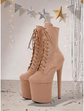 stivali da donna con plateau e lacci in pelle scamosciata color carne - scarpe con tacco altissimo per pole dance e performance in discoteca